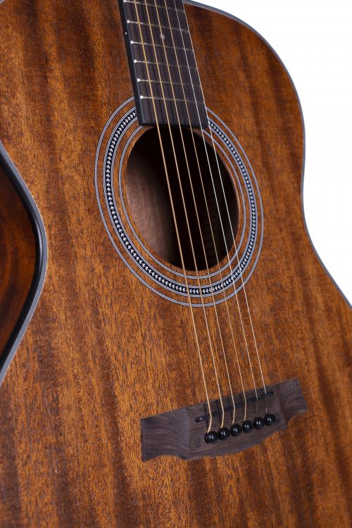 Kozmos KDA-32 serisindeki düz akustik ve elektrik akustik gitarlar, son günlerde gittikçe popüler olmaya başlayan Auditorium gövde şekliyle tüm tarzlardaki çalım deneyimlerinize, beste çalışmalarınıza ilham sağlıyor. Gövdesinin arka ve yan kısımlarında kullanılan Afrika’da yetiştirilmiş ağaçlardan olan Khaya Maun ağacı, özellikle orta (mid) seslerde sıcaklığa ve geniş tepkilere sahiptir. Tüm Maun çeşitlerinde olduğu gibi, benzersiz iç nemlendirme nitelikleri güçlü bir ton dengesini ve temeli oluşturur. Bu sayede sıcak orta seslerin yanında en alt seslerden en üst seslere kadar mükemmel bir denge sağlayarak verebilmektedir. Afrika maunu, Orta Amerika çeşitlerinden biraz daha sert bir yapıya sahip olarak, frekans tepkileri daha yüksektir. KDA-32 modellerinin ön kapak kısmında da, bu gitarların arka ve yan kısımlarında olduğu gibi Maun ağacı kullanılmıştır.